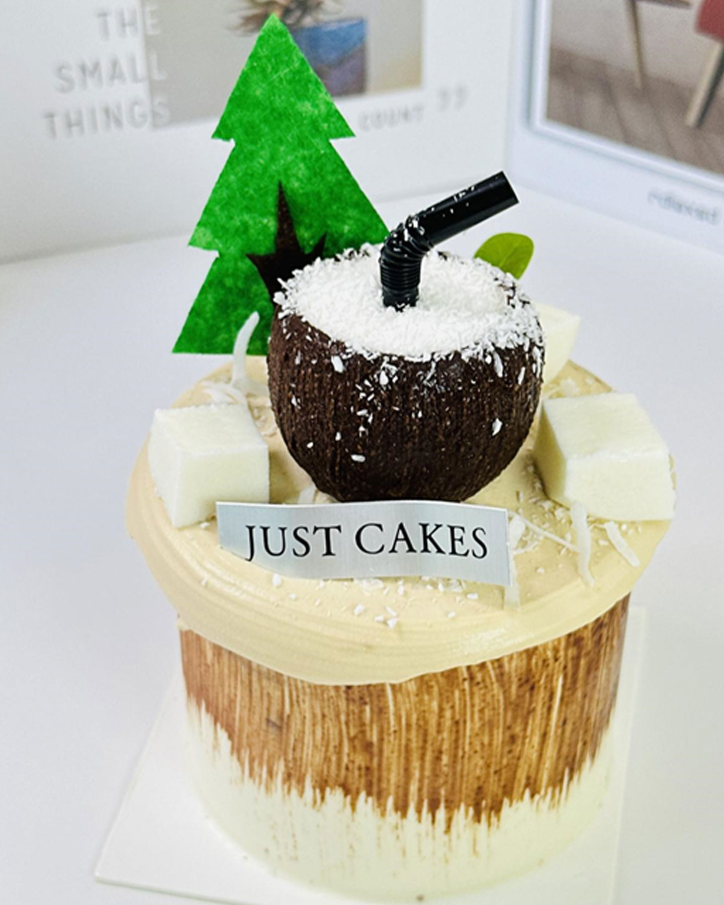 介绍:可可戚风胚、焦糖坚果脆、拿铁咖啡冻、拿铁咖啡奶油 椰子奶油、椰子冻 Description: Cocoa chiffon embryo, caramel nut crisp, latte jelly, lattecream coconut cream, coconut jelly